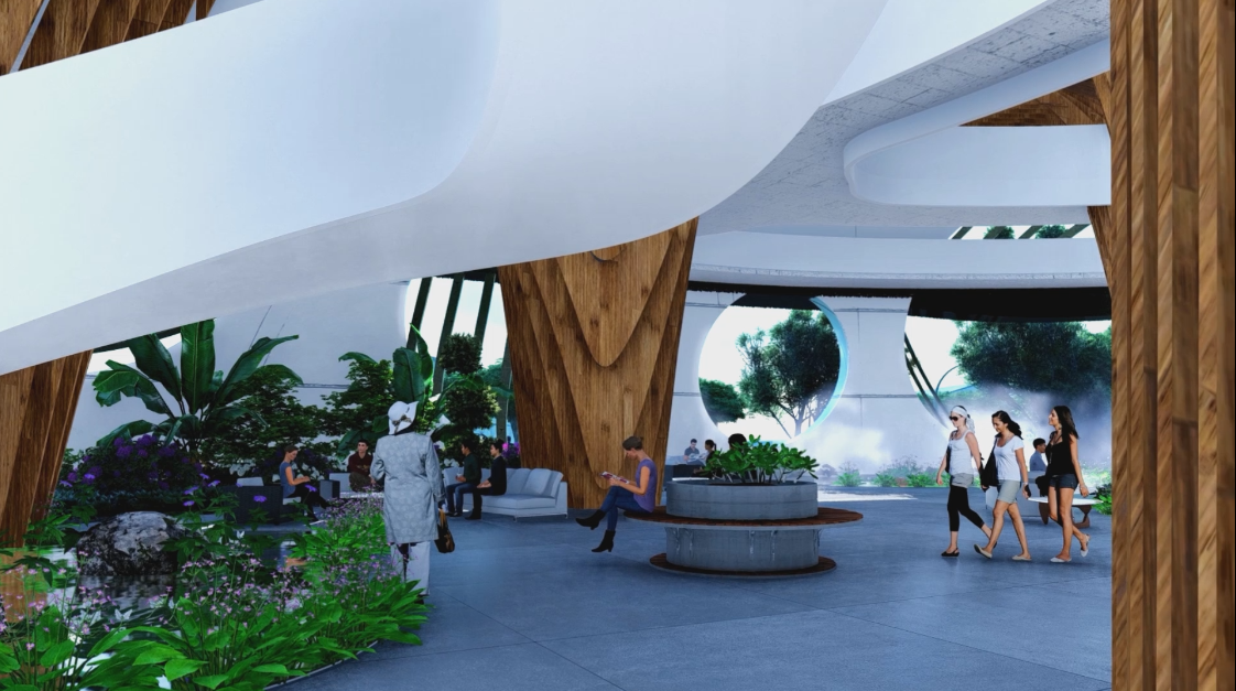 The programmatic plan and function of the building has five realms which the user transitions through, all packed with adventurous promenades from each unique space to the next. This building allows for the user to experience true freedom within an interior environment. The architectural design evokes feelings of rootedness, purpose, communication, harmony, vitality, love, and opportunities for self-expression. This health and wellness healing center helps people achieve high levels of happiness and wellbeing by using a conceptual process, like the development of a butterfly. The building transcends the occupant through a series of metamorphic life changing programmatic events, arriving as a caterpillar, transforming within the cocoon, and then leaving as a butterfly, feeling fresh, free and uplifted. Welcome to Apollo’s butterfly effect, where just a small change can make a huge difference in the success and pursuit of happiness.