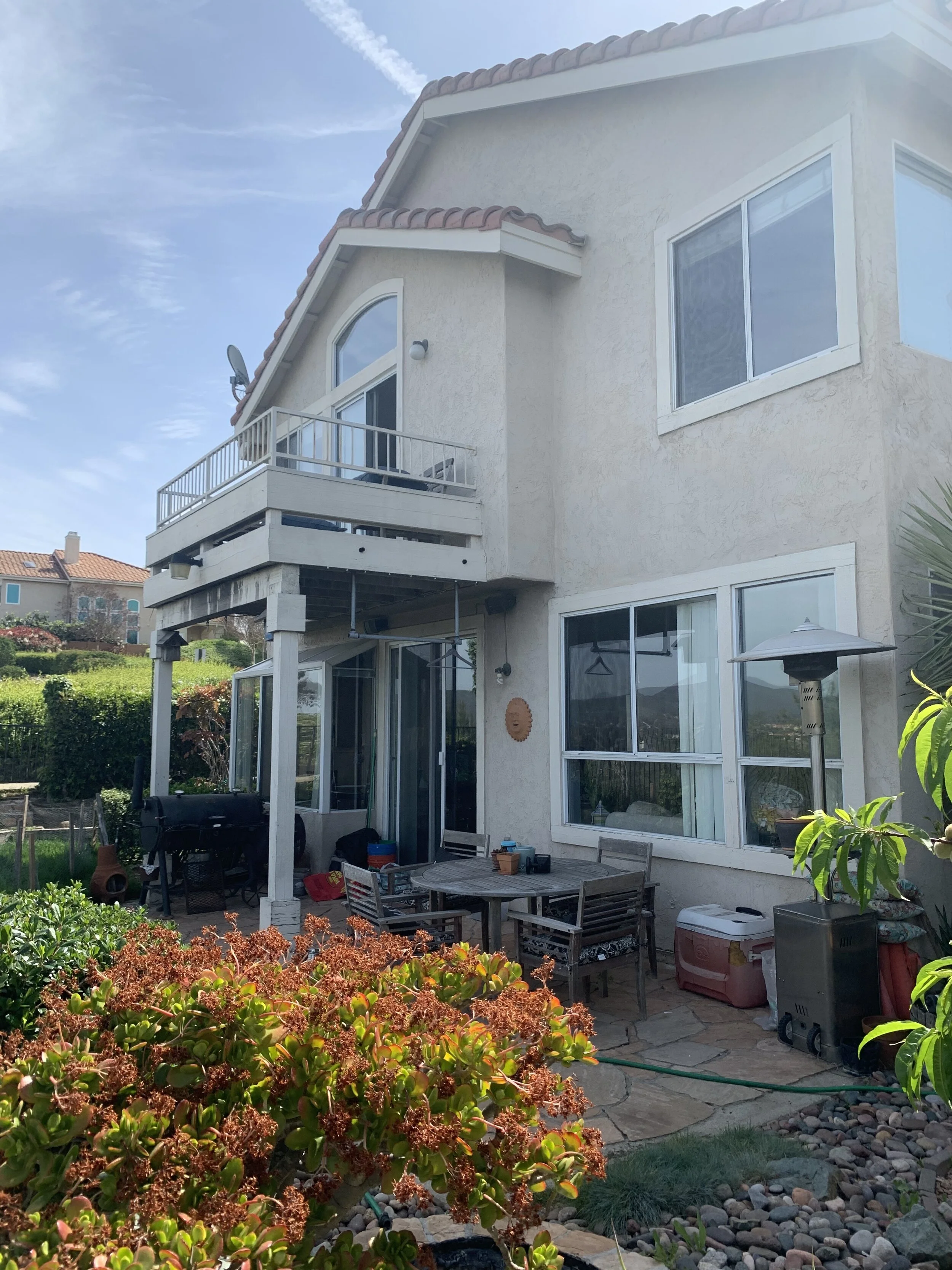Welcome to the Lee Residence, a 4,000 sf remodeled home located in the Mira Mesa neighborhood of San Diego. The client was interested in remodeling their kitchen/dining/living rooms, outdoor living area, stairway/lofted space, master bathroom, and master bedroom balcony. This remodel provides new opportunities for modern day living, family gathering, grander views to the landscape beyond, and continuity between spaces. The balcony creates a newly wed experience by connecting the indoor living room with an outdoor living space that is bonded with a double story fireplace that brings the vibe all together.